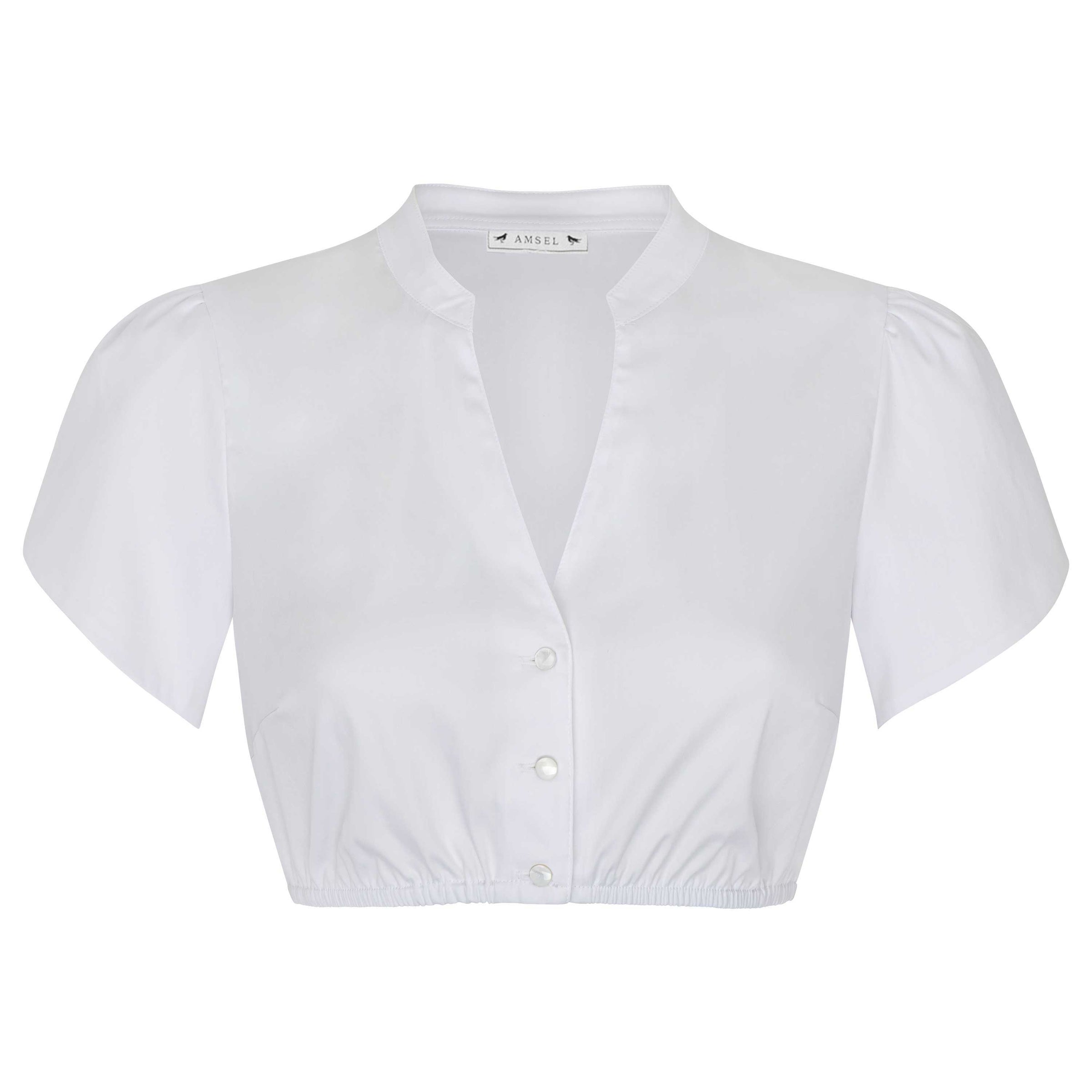 Dirndlbluse Tabea – weiße Bluse mit V-Ausschnitt und Tulpenarm