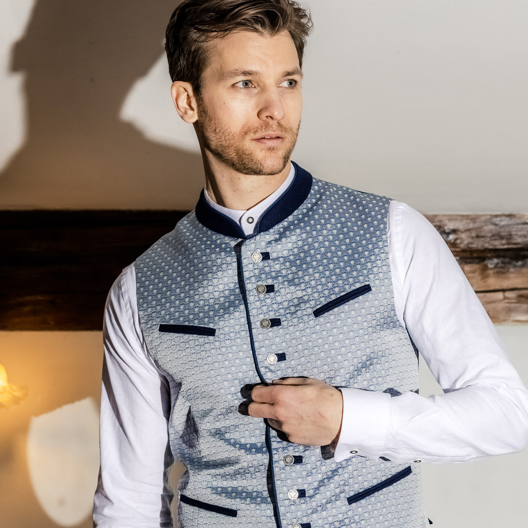 Der heimliche Star der Trachtenhochzeit ist jedoch die Trachtenweste, die z. B. aus hochwertigem Merinoloden, reiner Seide oder schimmerndem Brokatstoff hergestellt sein kann. In unsere Trachtenwesten stecken wir bei AMSEL unsere ganze KreativitĂ€t und Stilverliebtheit â zu sehen an in Seide gehaltenen Taschenpaspeln, Leistentaschen auf Brusthöhe, dem charakteristischen Stehkragen, paspelierten Knopflöchern und vielem mehr.